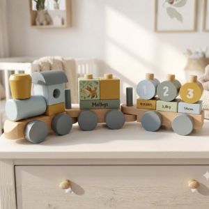 Zu unseren Highlights gehört auch der Holzzug Little Dutch, der mit den Geburtsdaten personalisierbar ist. Dieser hübsche Zug ist nicht nur ein Star-Dekorationsobjekt im Babyzimmer, sondern wird später auch ein geliebtes Holzspielzeug für Kleinkinder werden. Wir bieten auch personalisierte Stapeltürme an, die sich perfekt eignen, um die Kreativität und Entwicklung des Kindes zu fördern und gleichzeitig dem Kinderzimmer eine besondere Note zu verleihen.