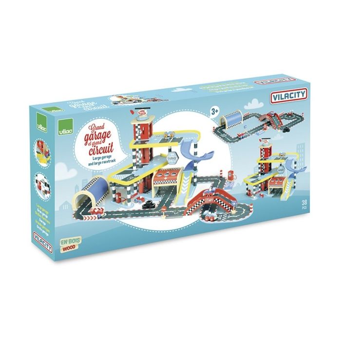 Kinder Spielzeug Holz, Autogarage und Rennstrecke Gross, Vilacity von Vilac