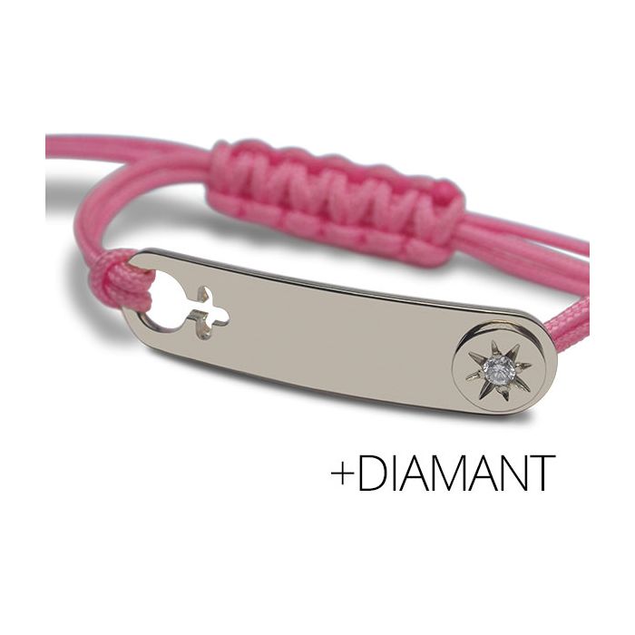 Baby Armband Silber 925 mit Diamant, rechteckig Mikado pink