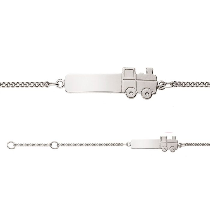 Baby Armband Weissgold 750 Gravurplatte Lokomotive, Gratis Versand in die Schweiz