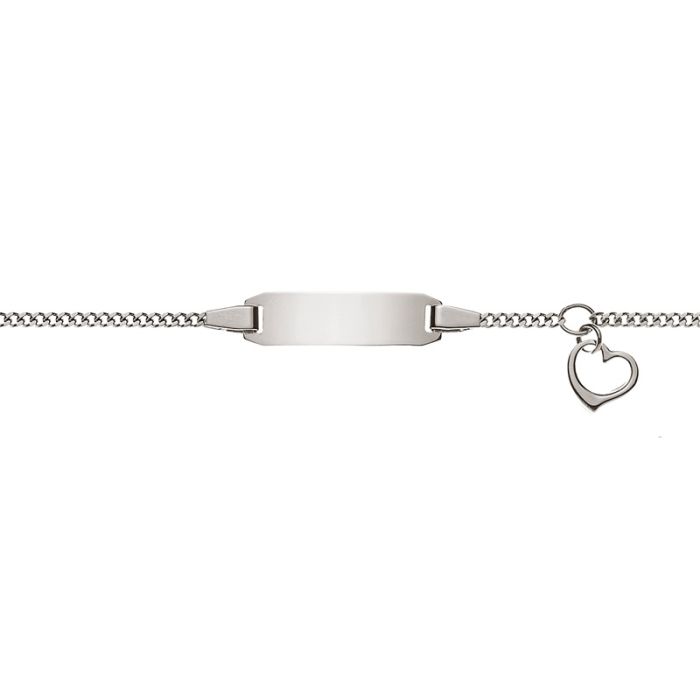 Identitätsarmband mit Herzanhänger Gravurplatte rechtecking.