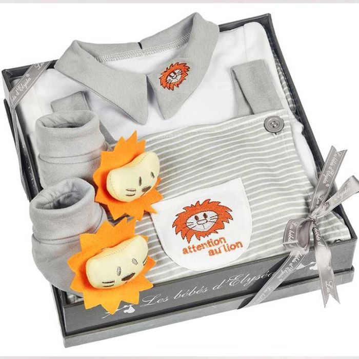 Geschenkset für Junge, mit Overall Löwe 3 Monate, Les Bébés d'Elizéa