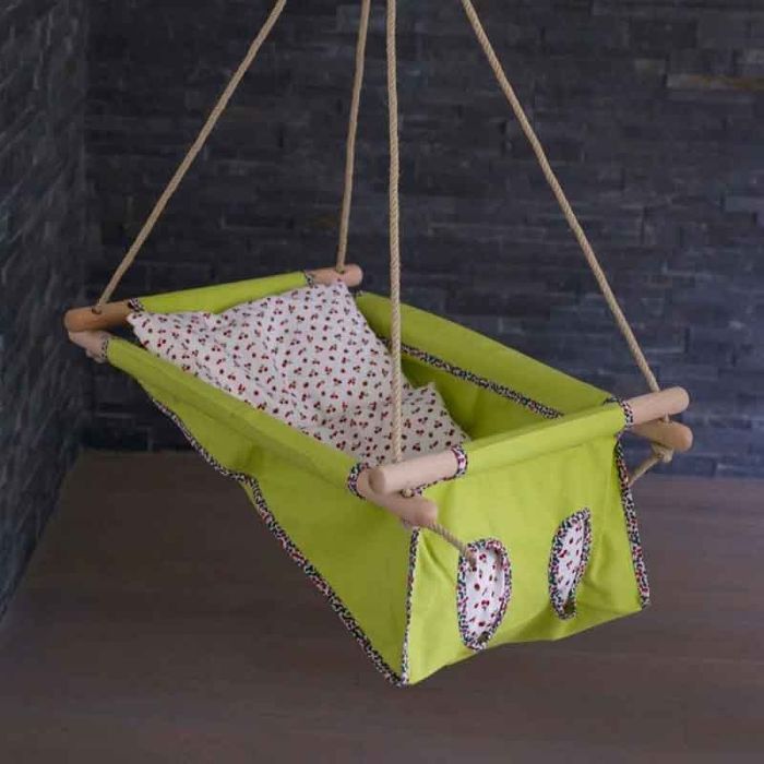 Baby Hängematte Bio grün mit Kirschen, Hängewiege, Öko-Tex Standard 100, Gratis Versand überall in die Schweiz