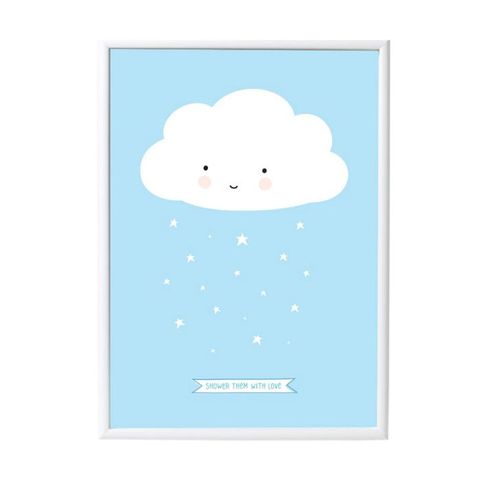 Poster für Baby Zimmer. Mit einer freundlichen Wolke und dem Text: Shower them with Love.