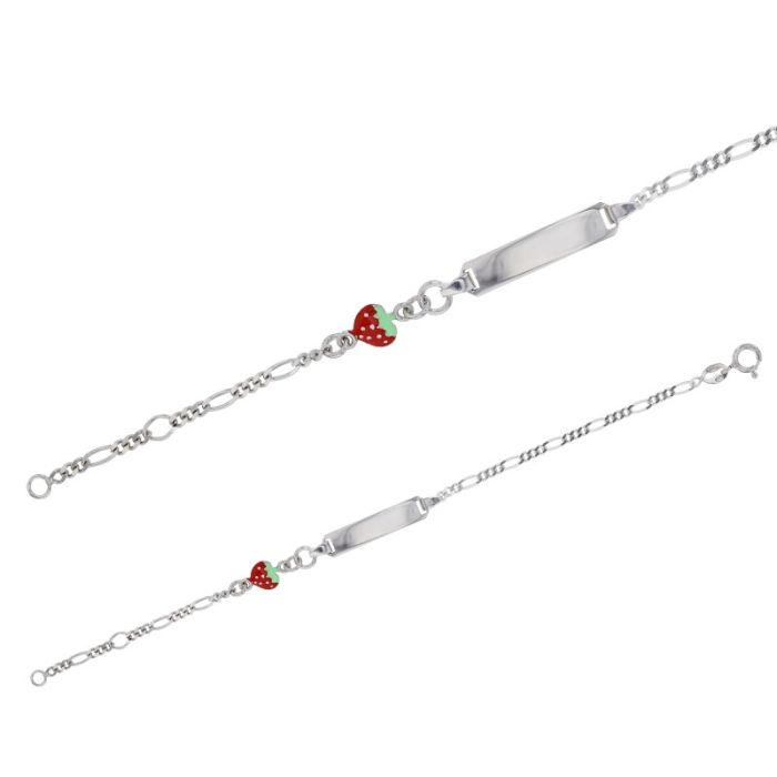 Rhodiniertes 925 Silberarmband für Mädchen, Benjamin & Suzette, Emaille-Design Erdbeere