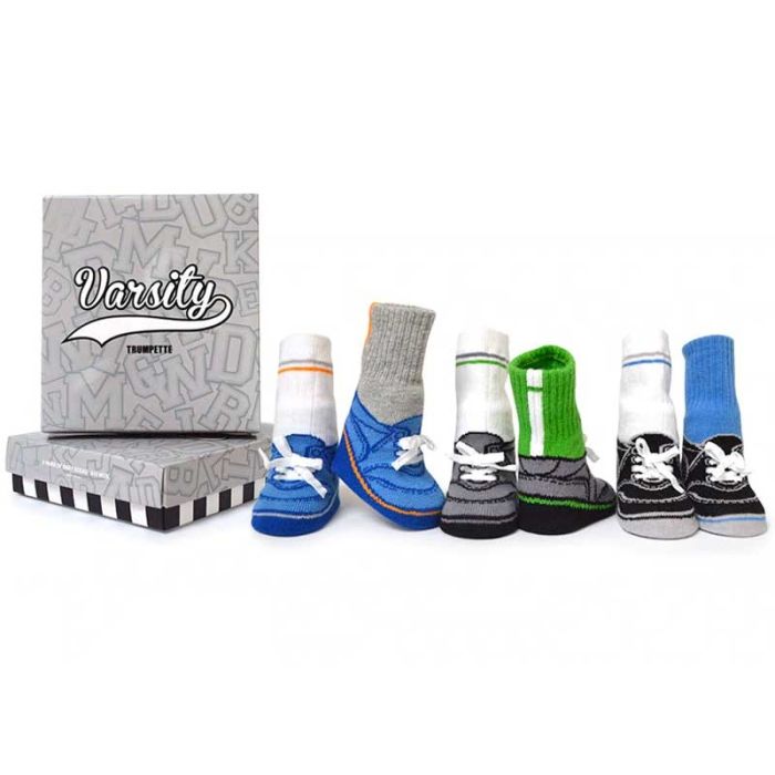Geschenkidee Geburt Baby Boy Babysocken Varsity Trumpette, Rasche Lieferung, Schweizer Online Shop