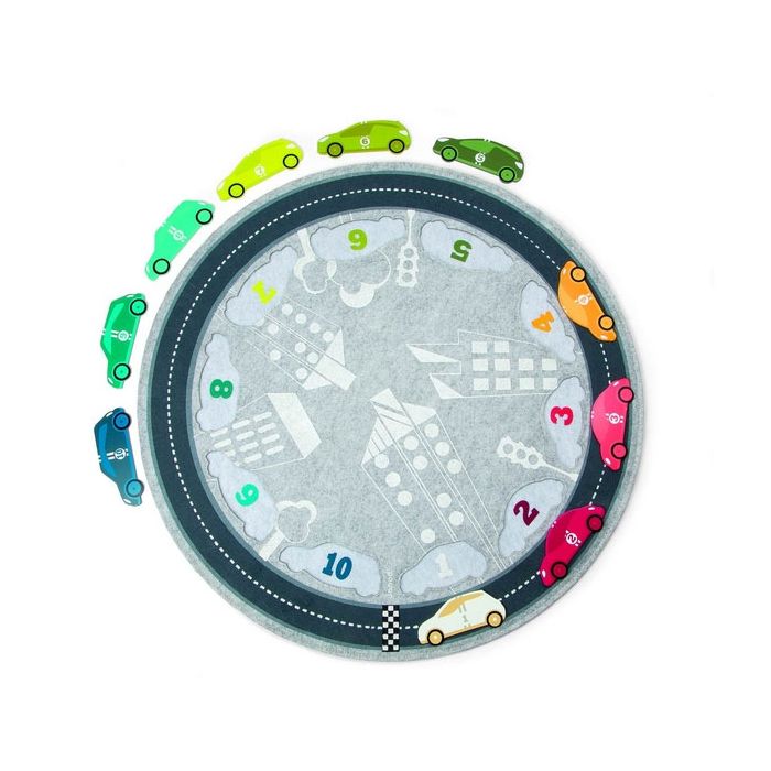2 in 1: ein riesiges Puzzle und ein wunderschöner dekorativer Teppich. Die aufgedruckten Zahlen entsprechen der Hauptfarbe jedes Auto.