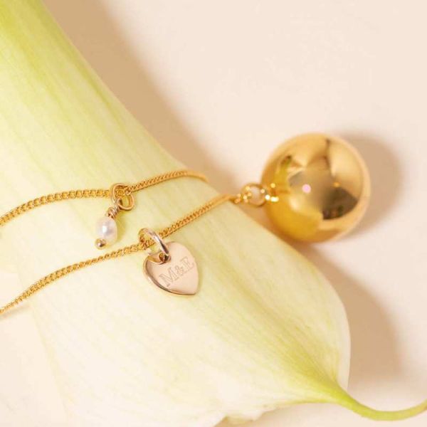 Was die Schwangerschafts Bola Klangkugel Chiara noch besonderer macht, ist die Möglichkeit, sie zu personalisieren. Der zentrale Anhänger in Form eines kleinen Herzens kann mit den Initialen der zukünftigen Eltern graviert werden. Diese Gravur, die in unserem Atelier in der Schweiz ausgeführt wird, verleiht dem Schmuckstück eine persönliche und intime Note und macht es zu einem wertvollen Erinnerungsstück, das man ein Leben lang aufbewahren kann. Ob Sie nun die Vornamen der Eltern oder die Initialen der zukünftigen Kinder eingravieren lassen, dieses Schmuckstück wird zu einer einzigartigen Verbindung zwischen der Mutter und ihrem Baby.