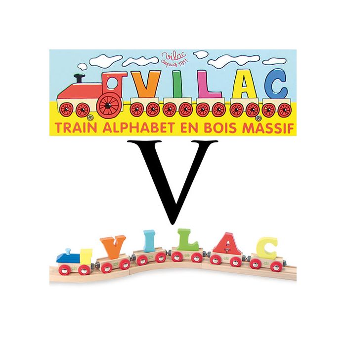 Buchstabenzug von Vilac.So lernt Ihr Kind die Buchstaben (Vorname oder Alphabet). Die Lokomotive und die Wägen dez Zuges sind magnetisiert.