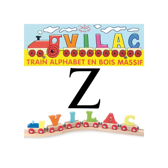 Buchstabenzug von Vilac.So lernt Ihr Kind die Buchstaben (Vorname oder Alphabet). Die Lokomotive und die Wägen dez Zuges sind magnetisiert.