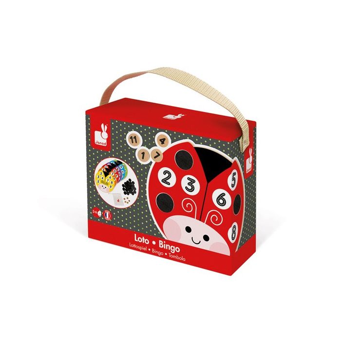 Von 3 bis 6 Jahre. Bingospiel mit 6 Marienkäferkarten von Janod.