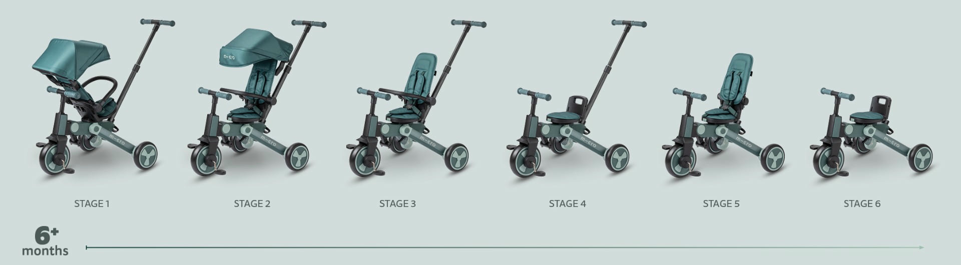Das Dreirad MICRO, das für Kinder ab 6 Monaten entwickelt wurde, ist viel mehr als nur ein Dreirad. Dank seines ausgeklügelten und mitwachsenden Designs begleitet es Ihr Kind während seines gesamten Wachstums und passt sich im Laufe der Zeit seinen Bedürfnissen an. Hier ist ein Überblick über die verschiedenen Nutzungsphasen, der die Flexibilität und Langlebigkeit dieses Produkts hervorhebt.