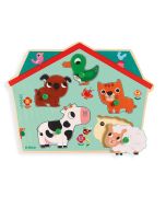 Wachsein, Motorik und Lachen sind mit dem Klangpuzzle Baobab von Djeco garantiert: 5 wilde Tiere zum Einsetzen und Hören!