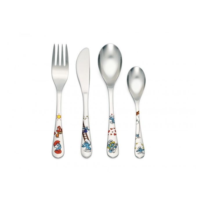 Kinderbesteck 4-teilig Die Schlümpfe, farbig Zilverstad