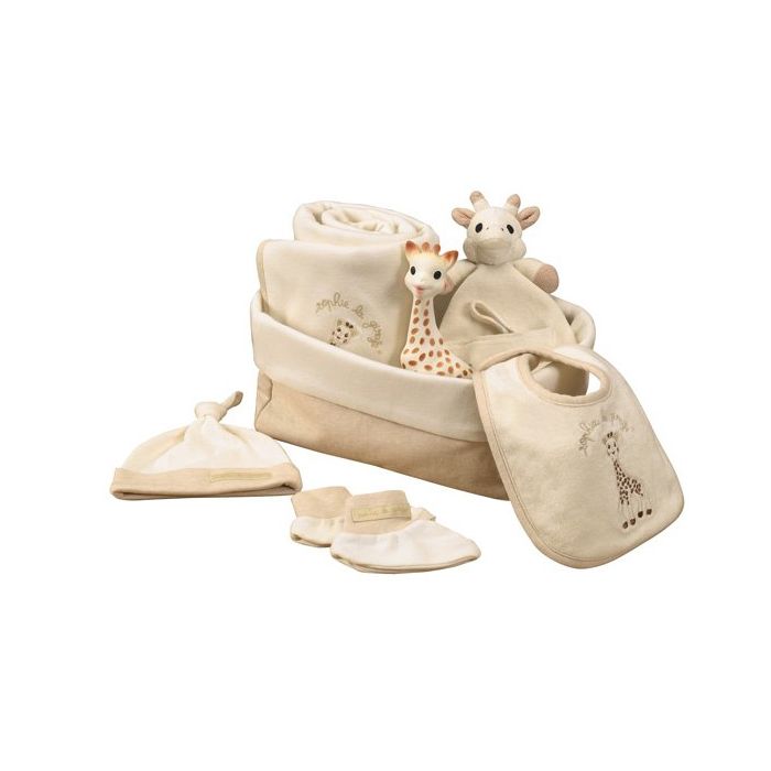 Geschenkkorb zur Geburt 100 % Bio-Baumwolle und Maisfasern, Meine ersten Stunden Sophie die Giraffe