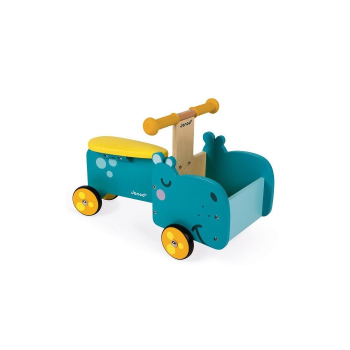 Laufrad Nilpferd mit beweglichem Vorderteil aus Holz, Baby ab 1 Jahr, Janod, Gratis Versand in die Schweiz