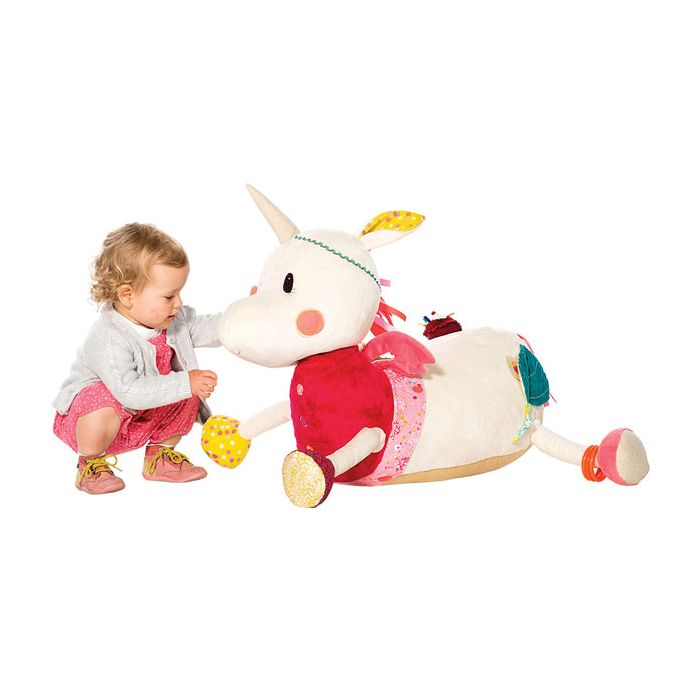 Louise das Aktiveinhorn bietet viel Unterhaltung: rasseln, knistern, quietschen, vibrieren und kleine verstecktn Überraschungen, mit Louise wird es nie langweilig. Aufgrund der Grösse können die Kleinen auch Ausritte auf Louise's Rücken machen.