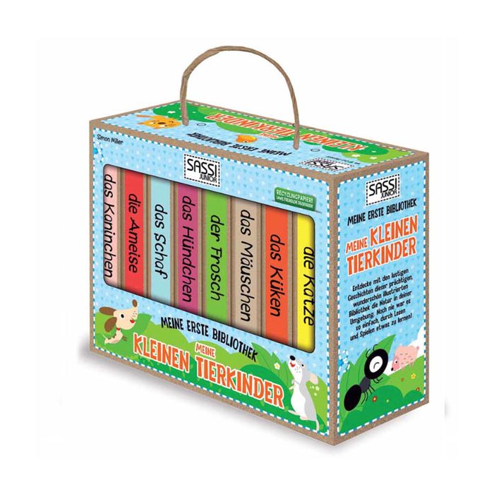 Sassi Junior Meine kleinen Tierkinder. 8 tolle kleine Bücher mit je 5 Seiten in einem Köfferchen zum tragen. Entdecke mit den lustigen Geschichten dieser prächtigen, wunderschön illustrierten Bibliothek die Natur in deiner Umgebung. Noch nie war es so einfach, durch Lesen und Spielen etwas zu lernen!