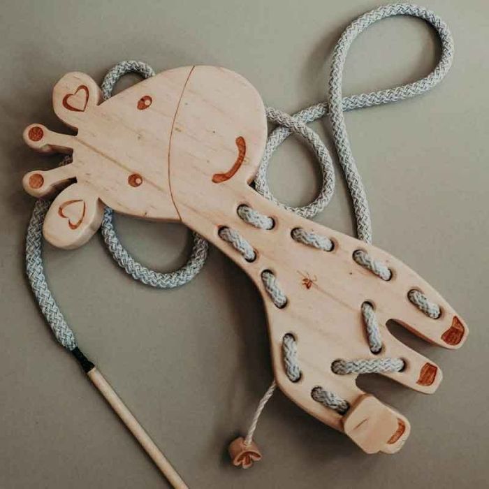 Montessori-Schnürspielzeug Giraffe, Handgefertigtes Holzspielzeug, Kaspi Land