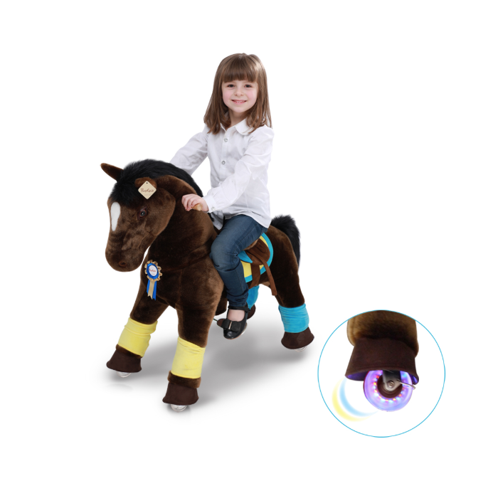 Premium Version: Dies ist die neuste Linie von PonyCycle. Diese Premium Ponys haben ein noch flauschigeres Fell und die Räder blinken beim Reiten in verschiedenen Farben. Die Premium Modelle werden inkl. dazu passendem Zubehör geliefert.