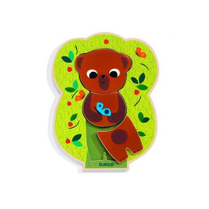 Puzzle Mixamatch von Djeco.Inhalt: 16 Teile für 4 Figuren (14 cm hoch).Aus Holz, und ab 2 Jahre.