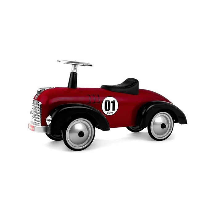 Kleine Beine geben ihm Kraft, aber seine schlanke, dunkelrote Karosserie und sein aerodynamisches Design geben unserem vom Vintagestil inspirierten Rutscher, all die Größe, die ein Rennfahreranwärter braucht.