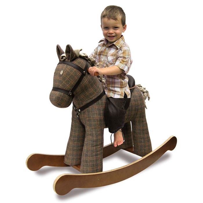 Das schöne Schaukelpferd Jasper von Little Bird Told Me lässt Kinderherzen höherschlagen! Das gepolsterte Schaukelpferd für Kleinkinder begeistert durch seinen klassisch britischen Look und zahlreiche Extras. Sein walnussfarben lackiertes Holz, der traditionell gemusterte Baumwollstoff, Sattel und Zaumzeug aus strapazierfähigem Kunstleder entführen die Kleinen im Nu in eine bezaubernde Fantasiewelt und sorgen für kreative Spielstunden