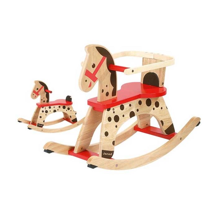 Schaukelpferd mit abnehmbarem Schutzring; Holz: Linde und Sperrholz.