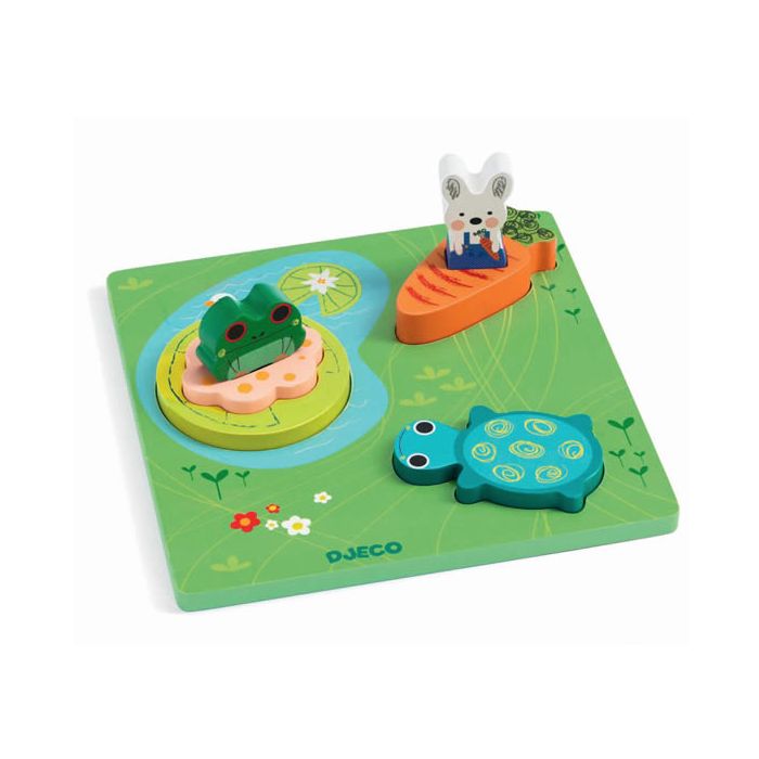Steckpuzzle mit süssen Motiven für Kinder ab 12 Monaten. Aus Holz, von Djeco