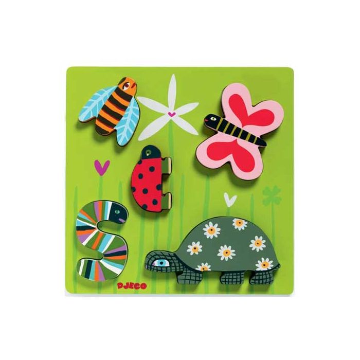 wunderschönes Steckpuzzle von Djeco mit grossen Holztiere für Kinder ab 12 Monaten geeignet ist.