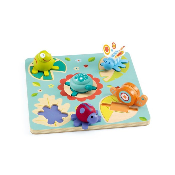 Farbenfrohes Steckpuzzle mit süssen Motiven für Kinder ab 12 Monaten. Aus Holz und Filz.