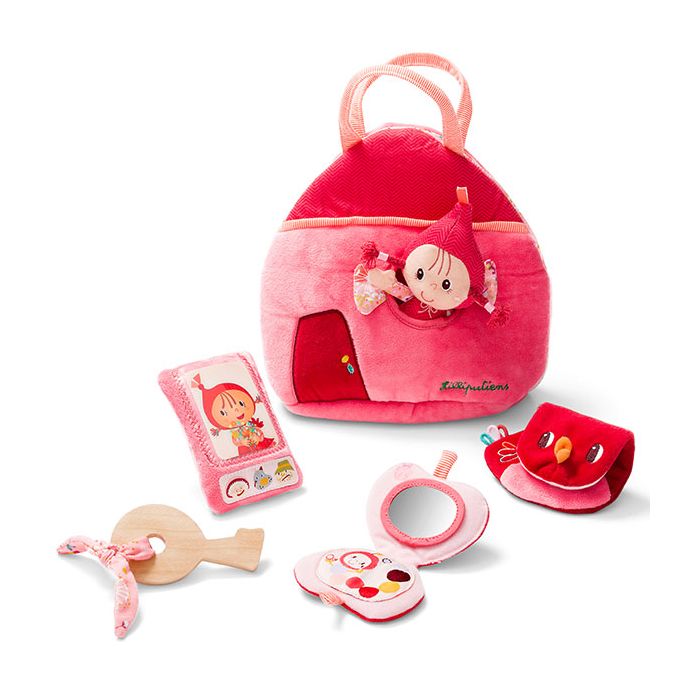 Die kleinen Mädchen gehen jetzt stolz mit ihrer Handtasche spazieren.Man kann dort sein Handy, den Hausschlüssel, eine Puderdose oder ein Portemonnaie verstauen und selbtverständlich auch Liz, die Begleiterin für alle Gelegenheiten.Darüber hinaus ist die Tasche wendbar. Je nach Lust und Laune hat sie die Farbe Pink Flashy oder das Blümchenmuster Liberty.
